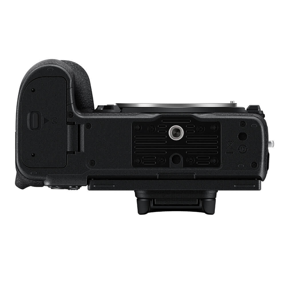 O Z7 II tem pontos de contato na parte inferior, tornando possível conectar um punho de bateria opcional com controle retrato. A pega pode ser encontrada com os acessórios.
