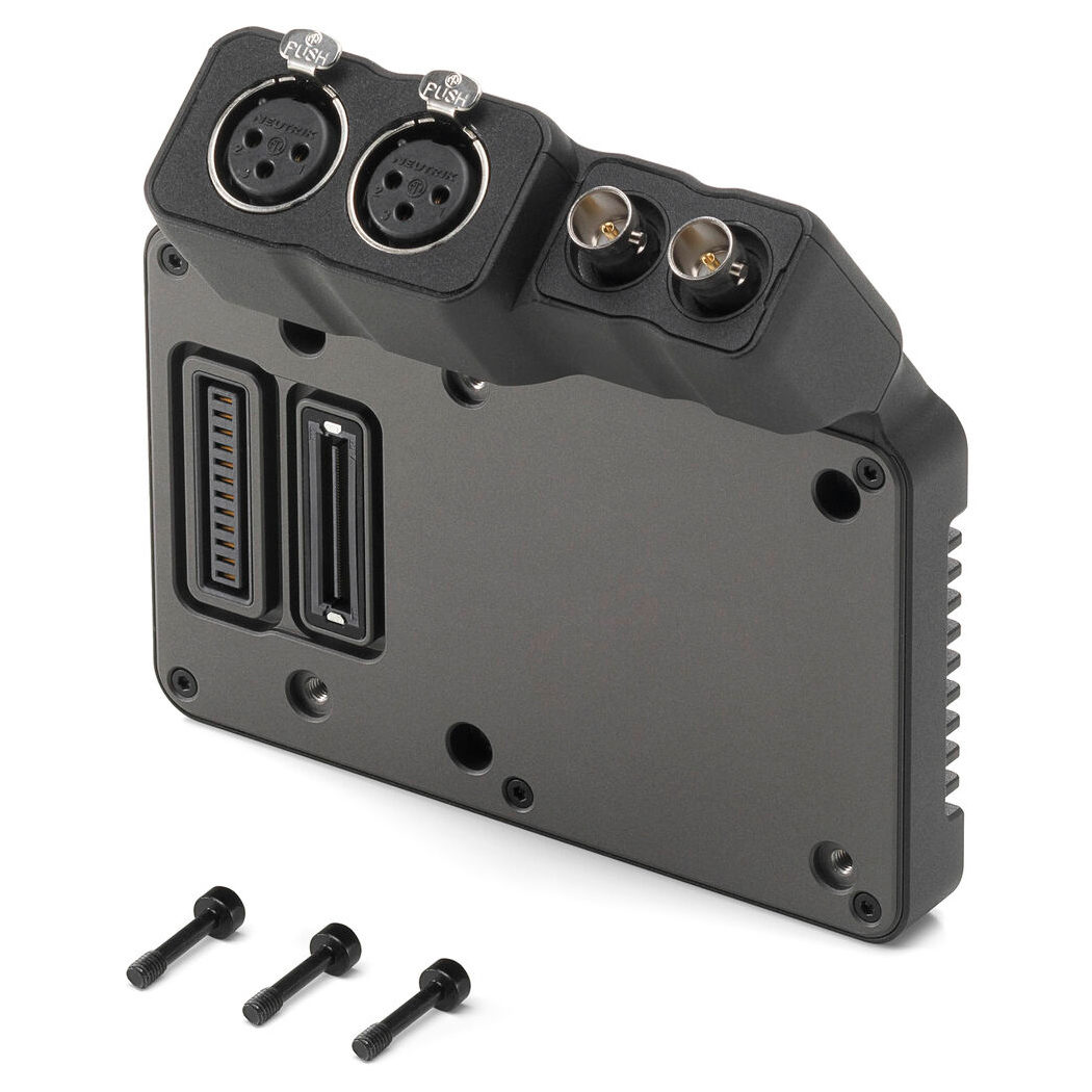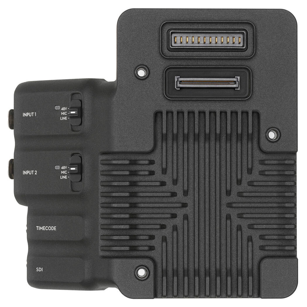 Placa de expansão DJI Ronin 4D (SDI/XLR/TC) Expanda as opções de conectividade da sua câmera de vídeo Ronin 4D com esta Placa de Expansão 4D DJI RONIN (SDI/XLR/TC). A placa se prende ao painel traseiro da câmera de vídeo usando seu próprio conector e três parafusos.