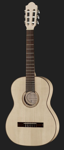 Classical Guitar 3/4 Size For ages 11+ (approx.) Top: Solid spruce Bottom and sides: Maple Neck: Maple Fretboard and bridge: Acacia Scale: 570 mm Nut width: 45 mm Total length: 925 mm Silk-matte lacquer Colour: Natural Made in Europe Thomann 3/4 Classic-Guitar Gigbag BK Nylon Gig Bag 3/4 Concert guitar Made from high-grade materials 20 mm Foam material Internal dimensions approx. L/W/D 100 x 35 x 10 cm Bottom of the body protection in the lower case Backpack straps Metal fittings External pocket Sheet music compartment Colour: Black Millenium Foot Rest Foot Rest for Guitar Height adjustable with 4 slots Non-slip rubber pad Height adjustable from 12.5 to 25 cm Length: approx. 25 cm Width: approx. 10 cm Weight: 0.60 kg Colour: Black Thomann CTG-10 Clip Tuner Clip Tuner for Guitar and Bass Chromatic Tuning via vibration sensor Large backlit display Two-tone display for showing the correct tuning Rotates 360° Includes battery (CR2032) Harley Benton Valuestrings Classic String set for concert guitar E-, A-, and D-strings are silver-plated and roundwound E-, B-, and G-strings are made from nylon Gauge: normal tension