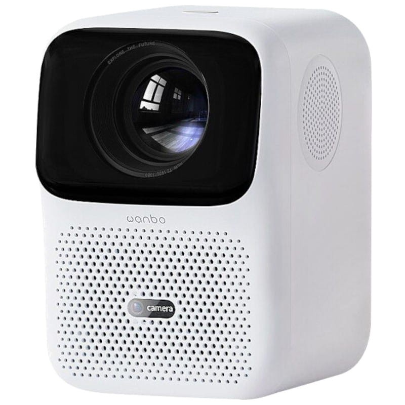 Especificações técnicas Projetor Wanbo T4 FullHD 1GB/16GB Android 9.0: Marca: Wanbo Modelo: T4 Projetor:Processador MediaTek 9269 Quad-Core ARM Cortex-A53 GPU: ARM Mali-G31 MP2 Memória RAM: 1 GB DDR4 Capacidade de armazenamento: 16 GB eMMC Sistema operacional: Android 9.0 Colunas: 2 x 3W Conexões sem fio: WiFi: Wi-Fi 6 de banda dupla Bluetooth v5.0 Projeção:Tecnologia de projeção: LCD de 4" Tecnologia de fonte de luz: LED Brilho: 450 ANSI Lumens Resolução máxima: 1920 x 1080 pixels Contraste: 10.000:1 Proporção de lançamento: 1,25:1 Escala de projeção: 16:9, 4:3 Projeção de até 100 polegadas Controle de foco e correção de keystone: automático Foco automático de IA Compatível com HDR10+ Recursos:Compatível com espelhamento Sistema de refrigeração do ventilador Silencioso, menos de 30 dB Design anti-poeira Interface:1 x USB 3.0 1 x conector de áudio de 3,5 mm 1 x HDMI Dimensões: 185 x 127 x 150 mm Peso: 1,2 kg Cor: Branco