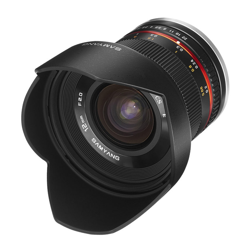 Samyang 12mm f/2.0 NCS CS Fujifilm X lente Preto A lente Samyang 12 mm f/2.0 NCS CS é leve, tem um design compacto e tem um campo de visão incrivelmente grande! A distância focal fixa de 12mm é comparável a uma distância focal de 18mm em uma câmera de quadro completo. E graças ao brilho, você pode usar a lente muito bem em um ambiente com pouca ou má luz.