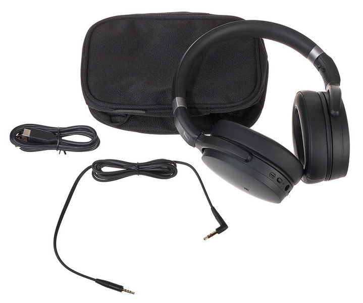 Fones de ouvido Bluetooth Circumaural Fechadas Cancelamento de ruído ativo Bluetooth 5.0 e AA Codec AptX Compatível com Sennheiser Smart Control App Até 30 horas de operação Nível máximo de pressão sonora: 108 dB (1 kHz / 0 dBFS) Faixa de frequência: 18 - 22.000 Hz Distorção Harmônica: <0,3% (1kHz / 100dB) Peso: 238 g Cor preta Inclui cabo de carregamento USB, cabo de áudio e capa
