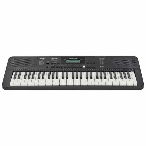 Startone MK-201 Teclado 61 teclas com resposta ao toque Polifonia de 64 vozes 480 vozes 160 estilos 140 músicas Refrão DSP sequenciador Ajuste de tom memória de desempenho Modo Piano Sustentar metrônomo Dividir camada Transpor Gravar e reproduzir Alto-falante com 2x 2,5 Watt tomada de fone de ouvido Conexão do microfone Conexão do pedal de sustentação USB para host (somente Midi, Windows 8 ou posterior, Mac OS X 10.8 ou posterior) Operação com bateria possível Dimensões (L x P x A): 943 x 316 x 101 mm Peso: 4kg Inclui fonte de alimentação e suporte de música