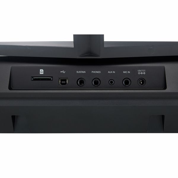 61 teclas com teclas sensíveis à velocidade Polifonia de 64 vozes 580 vozes + 5 amostras 180 estilos 180 músicas 24 memórias de desempenho camada Dividir Duo StyleControl metrônomo Efeitos: Reverb, Chorus, DSP, DJ Effects Equalizador mestre misturador sequenciador Gravar e reproduzir Slot para cartão SD (128 GB) Pitch Bend FX & Filter Touch Pad - LPF, HPF, Reverb, Release, Delay, Sidechain Comp Alto-falante: 2 x 15 watts USB para hospedar (Midi e Áudio, Windows 8 ou posterior, Mac OS X 10.8 ou posterior) Funcionamento ideal da bateria (6x AA, não incluído) plug do fone de ouvido Conexão do pedal de sustentação midi usb áudio usb auxiliar em Dimensões (L x P x A): 956 x 360 x 118 mm Peso: 5,1kg Inclui fonte de alimentação e suporte para partituras