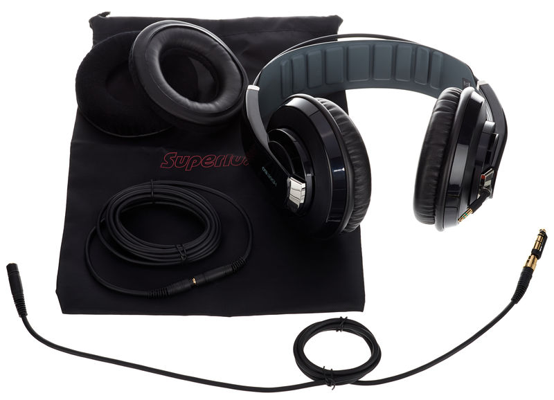 Fones de ouvido de estúdio Dinâmico Circumaural (tamanho completo) Semi-aberto 50 mm Driver Pico SPL: 98 dB Impedância: 32 Ohm Faixa de frequência: 10 - 30000 Hz Potência máxima: 300 mW Minijaque estéreo de 3,5 mm Peso (excluindo cabo): 276 g Cor: Preto Inclui 1 cabo de 1 m, 1 cabo de 3 m, adaptador de mini-jack estéreo de 6,3 mm, bolsa de transporte e um par extra de protetores auriculares de veludo