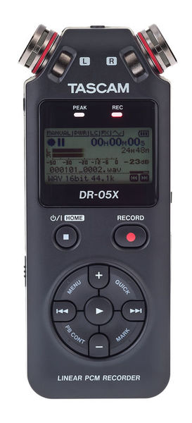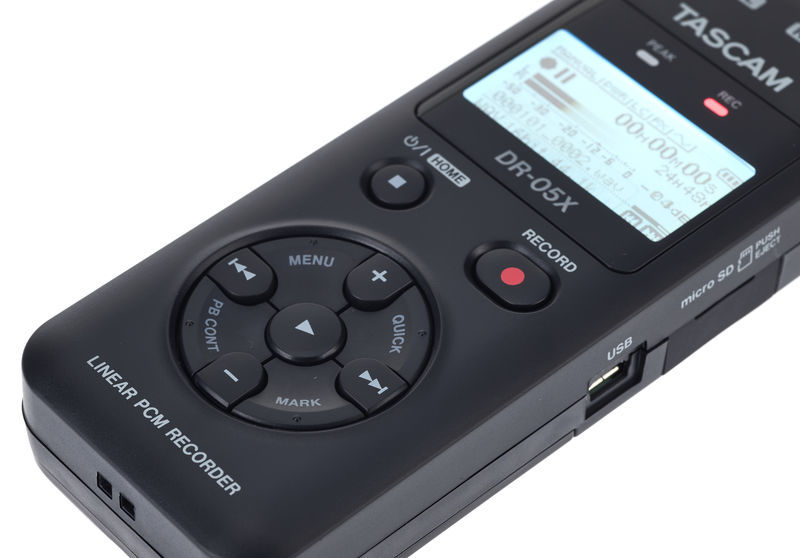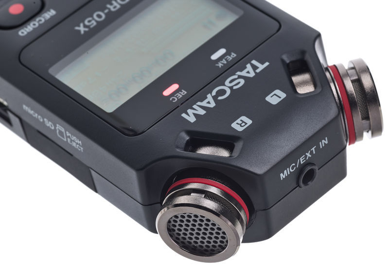 Gravação e reprodução de arquivos MP3 (até 320 Kb / s) e WAV (até 24 bits / 44,1 / 48/96 kHz) Mídia de gravação: cartões Micro SD / SDHC / SDXC (até 128 GB) Utilizável como interface de áudio USB para Mac e Windows (2x2) Dois microfones omnidirecionais integrados (nível de pressão sonora de até 125 dB) Filtro de som com impacto selecionável (40/80/120 Hz) Possibilidade de configuração manual do nível de gravação e controle automático Limitador integrado Função de temporizador Função marcador Gravação atrasada Overdub Modo de ditado para gravações e transcrições de voz Menu multilingue Alto-falante embutido Mini-entrada estéreo de 3,5 mm para entrada de microfone / linha (com alimentação plug-in) Saída de fone de ouvido / linha Conexão USB 2.0 Fonte de alimentação com 2 pilhas ou pilhas recarregáveis NiMH (tamanho AA), USB ou fonte de alimentação opcional (Tascam PS-P520E, não incluída) Dimensões (L x A x P): 61 x 141 x 26 mm Peso (sem baterias): 0,119 kg Pára-brisa de pêlo adequado: Art.332678 (não incluído)