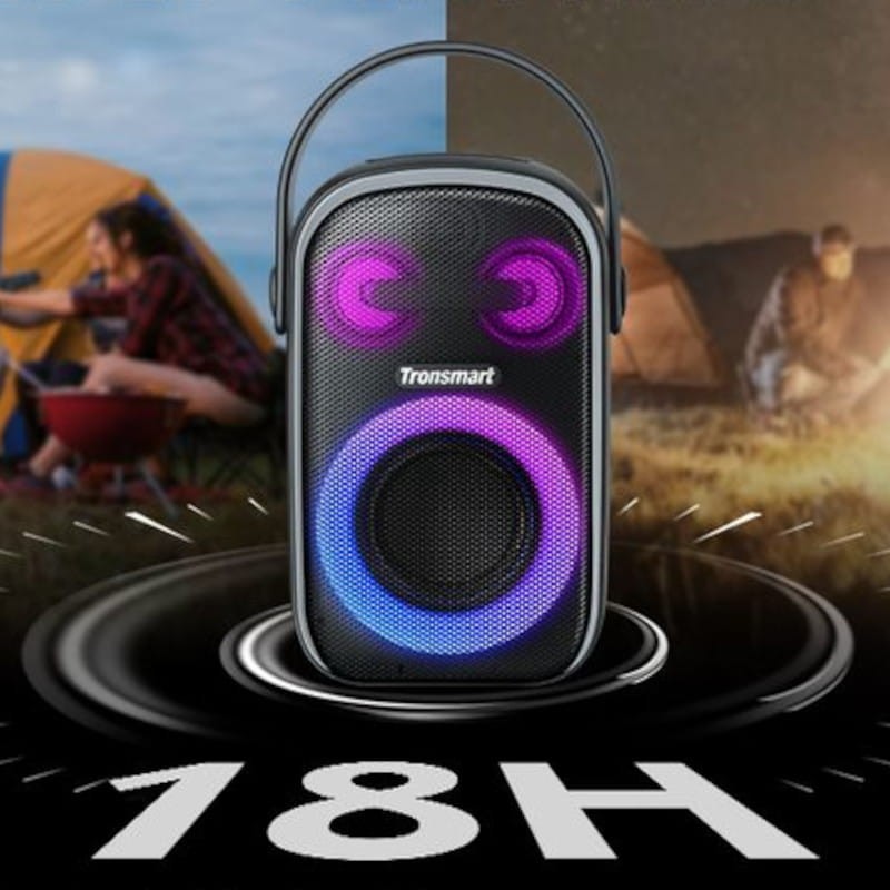 A Coluna Tronsmart Halo 110, com uma potência de saída de até 60W, oferece uma experiência de áudio sem igual. Além disso, possui um sistema de som de 3 vias e modos de áudio duplos, personalização de efeitos de áudio através da aplicação, microfone de Karaoke incorporado e resistência à água IPX6.
