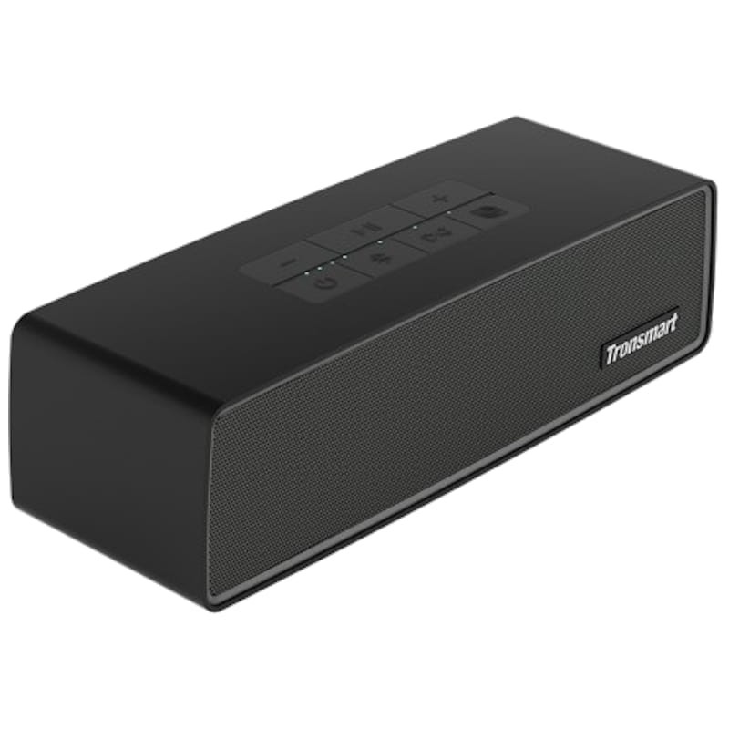 Especificações técnicas Tronsmart Studio - Coluna Bluetooth: Marca: Tronsmart Modelo: Studio Tecnologia SoundPulse Som:Potência (watts): 30 W RMS Faixa de frequência: 60Hz - 20kHz Integra 3 drivers e 4 radiadores passivos Som dinâmico 2.1 Bluetooth:Versão Bluetooth: 5.0 Distância de transmissão: até 10m (área aberta) Compatível com A2DP / SBC / AAC Conexões:Porta de carregamento USB tipo C Porta de entrada Jack de 3,5 mm Espaço para cartão TF/SD Características principais:Resistência à água IPX4 Sincronização com mais de 100 colunas Controlo integrado na coluna Compatível com assistentes pessoais (Google Assistant e Siri) Compatível com Tronsmart APP (Android/iOS) Bateria:Capacidade da bateria :; 2.000 mAh, Tempo de uso: até 15 horas Tempo de carregamento: até 3-3,5 horas Medidas e peso:Dimensões: 8 x 45 x 45 cm Peso líquido: 961 gr Material: Alumínio/ABS Cor: Preto Conteúdo da embalagem: 1 x Tronsmart Studio - Coluna Bluetooth 1 x Cabo AUX 1 x Cabo de carregamento USB-C 1 x Manual do usuário