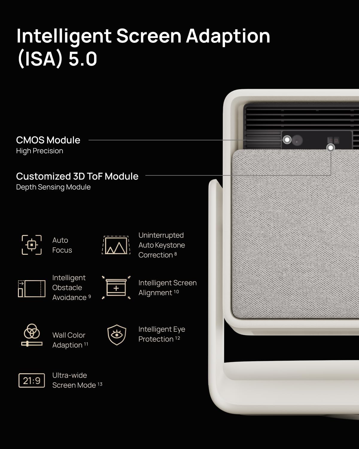 ISA 5.0: Nossos algoritmos avançados de percepção espacial agora se beneficiam de um aumento significativo no treinamento de dados de imagem que oferece recursos mais inteligentes, como ajuste de cor da parede e modo widescreen.