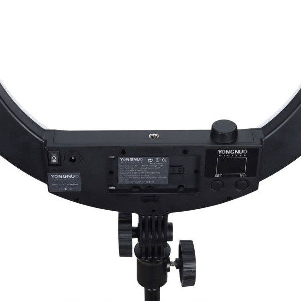 A Yongnuo YN-408 é uma lâmpada de anel LED especialmente projetada para vídeo ao vivo ou tirar selfies. O YN-408 está equipado com 208 LEDs poderosos com temperatura de cor ajustável de 3200 a 5600K. Com seu smartphone e um aplicativo especial, você pode ajustar o brilho com rapidez e precisão.