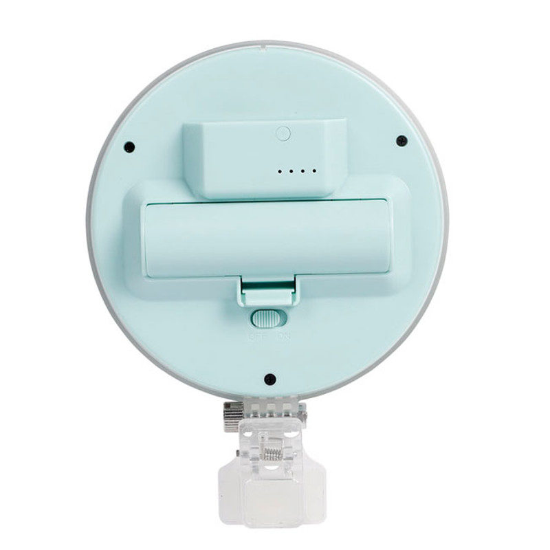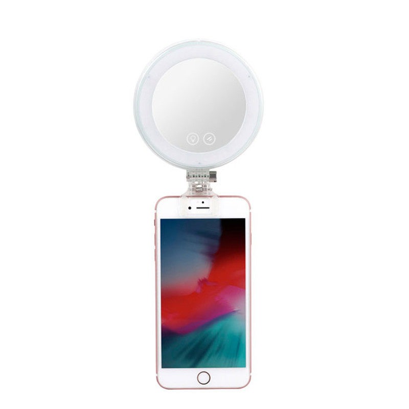 A lâmpada está equipada com um clipe útil para conectá-lo a dispositivos inteligentes, como um smartphone ou tablet. Ideal para fotos de selfie!