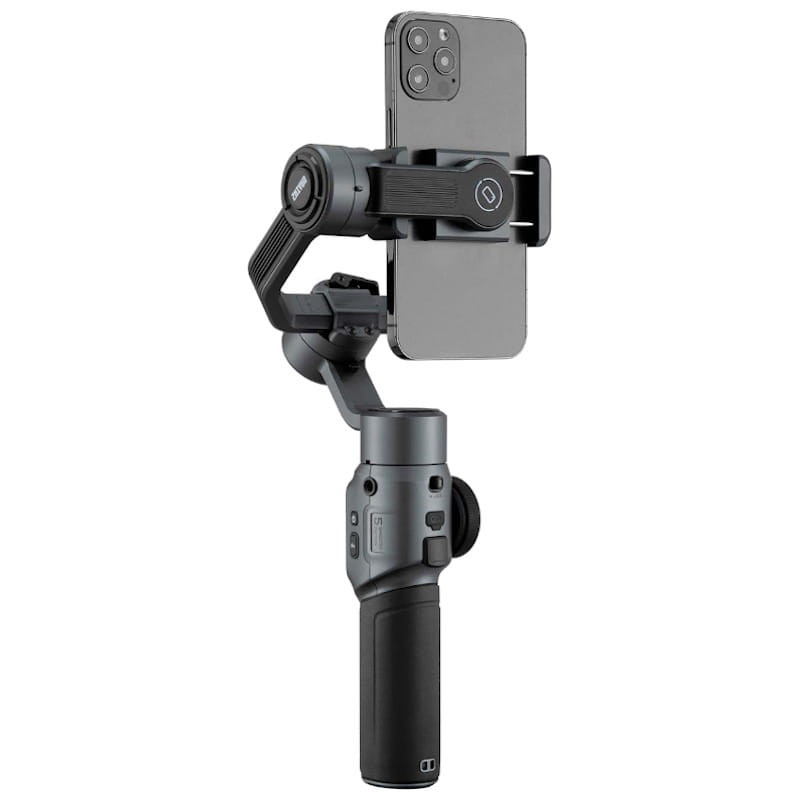 Especificações técnicas Zhiyun Smooth 5 Standard - Estabilizador para smartphone: Marca: Zhiyun Modelo: Suave 5 Gimbal para smartphone Recursos:Ângulo de rotação: 300º Ângulo de inclinação: 349º Ângulo panorâmico: 360º Peso mínimo suportado: 150 gr Peso máximo suportado: 300 gr Funções:APP ZY Cami Botões de controle Zoom e roda de foco Seguimento inteligente Controle por gestos Até seis modos de controle Bateria:Autonomia máxima: 12 horas Tempo de carregamento: 3 horas (com carregamento rápido) Temperatura de uso: 45ºC (Máx.)/25ºC (Padrão)/-10ºC (Min) Dimensões: 311 x 168 x 52 mm Peso: 615 gr