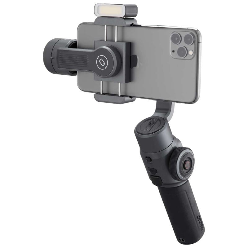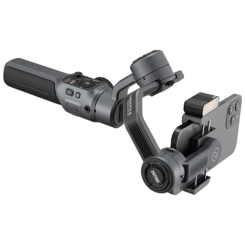 Especificações técnicas Zhiyun Smooth 5 Combo - Estabilizador para smartphone: Marca: Zhiyun Modelo: Suave 5 Gimbal para smartphone Recursos:Ângulo de rotação: 300º Ângulo de inclinação: 349º Ângulo panorâmico: 360º Peso mínimo suportado: 150 gr Peso máximo suportado: 300 gr Funções:APP ZY Cami Botões de controle Zoom e roda de foco Seguimento inteligente Controle por gestos Até seis modos de controle Bateria:Autonomia máxima: 12 horas Tempo de carregamento: 3 horas (com carregamento rápido) Temperatura de uso: 45ºC (Máx.)/25ºC (Padrão)/-10ºC (Min) Dimensões: 311 x 168 x 52 mm Peso: 615 gr
