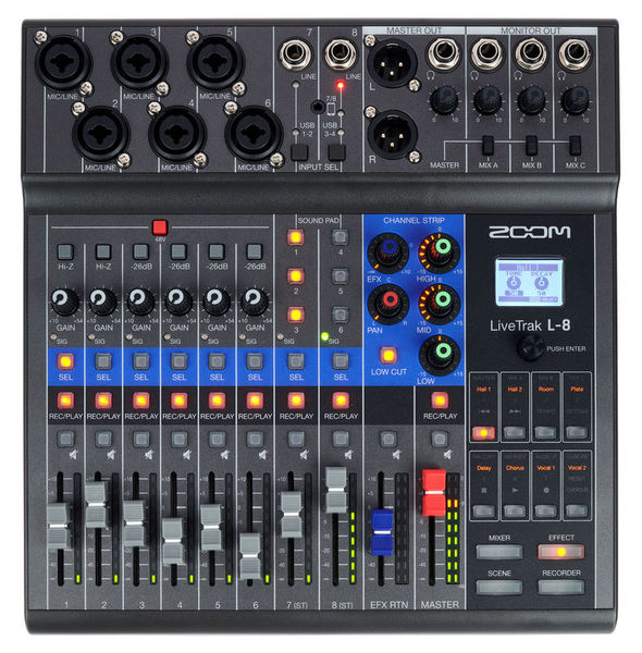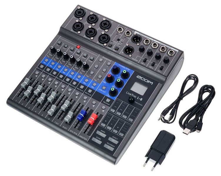 Mixer de podcast compacto, interface de áudio e gravador Mixer de 8 canais Canais 1-2 para sinais de microfone, linha e instrumento - soquete combinado XLR / TRS Canais 3-6 para sinais de microfone e linha - soquete combinado XLR / TRS Canais 7-8 para sinais de linha - conector de 6,3 mm Reprodução estéreo USB e reprodução por telefone - TRRS de 3,5 mm Função Mix-menos para impedir o retorno de áudio dos convidados de discagem Por canal: EQ de 3 bandas, filtro de corte baixo, controle de panorama, loop de efeitos Alimentação fantasma de 48 V comutável Seção de efeitos com 8 programas diferentes 6 almofadas de som atribuíveis para jingles, introduções, outros e efeitos sonoros 4 saídas de fone de ouvido (6,3 mm TRS) para mix principal e 3 mixes de monitor Saída estéreo balanceada (XLR) 7 slots de memória de cena para mixagens Possível operação com bateria (4x AA) Grave até 12 faixas no cartão SD ou no computador (USB) com no máximo 24 bits / 96 kHz É possível gravar simultaneamente no cartão SD e no computador com um máximo de 24 bits / 48 kHz Interface de áudio USB integrada com 12 entradas e 4 saídas USB 2.0 Requisitos de sistema: Windows 7 ou posterior, macOS 10.12 ou posterior Dimensões (L x P x A): 282 x 268 x 74 mm Peso: 1,56 kg Inclui cabo TRRS de 3,5 mm, cabo USB e adaptador de alimentação AD-17