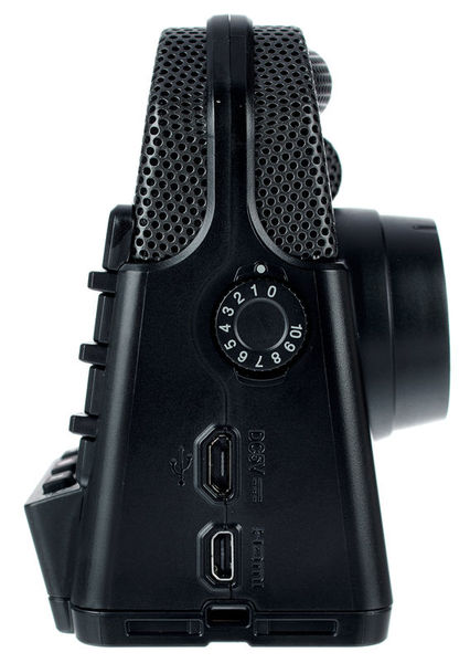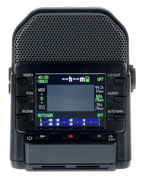 Lente grande angular de 150 ° de alta qualidade - F2,8 / 15,2 mm 12 opções de "cena" para fotografar em diferentes condições de iluminação Microfone estéreo X / Y embutido Tolera níveis de pressão sonora de até 120 dB sem distorção Utilizável como um gravador de áudio independente com até 24 bits / 96 kHz 5 Configurações do ângulo de visão (FOV) Grave diretamente em cartões micro SD / SDHC / SDXC com até 256 GB Ecrã LCD a cores 3 modos de vídeo HD: 720p, 1080p e 4K Faixa dinâmica alta (HDR) Taxas de bits de vídeo de até 76 Mbps Taxas de atualização de imagem: 4K / 30fps, 4K / 25fps, 4K / 24fps, 1080p / 60fps, 1080p / 50fps, 1080p / 30fps, 1080p / 25fps, 1080p / 24fps, 720p / 30fps, 720p / 25fps Saída de Vídeo Micro HDMI (Tipo D) Gravando vídeo (com áudio) no formato MOV Medidores digitais na tela Função de ganho automático para controle automático do nível de entrada Entrada estéreo para conectar dispositivos externos com saída de energia de plug-in Saída de nível de fone de ouvido / linha para monitoramento de áudio Filtro de corte baixo Interface USB para transmissão ao vivo e transmissão de dados Compatível com o software OBS Open Broadcaster, Skype e outros aplicativos de streaming Função de webcam e microfone USB em operação com computadores e iPads Operação com duas pilhas AA (incluídas) Dimensões: 58,7 x 68,5 x 83 mm Peso: 124 g